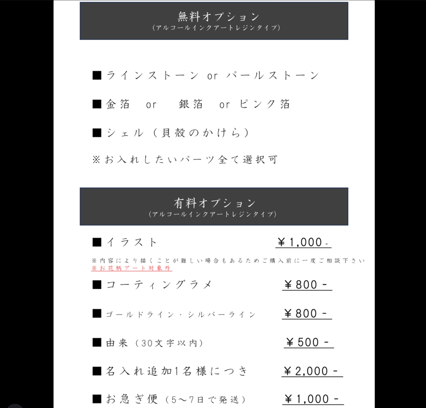 ⚠️2ページ目に無料オプション、有料オプション、3ページ目に注意点を記載しておりますので必ずご確認お願い致します